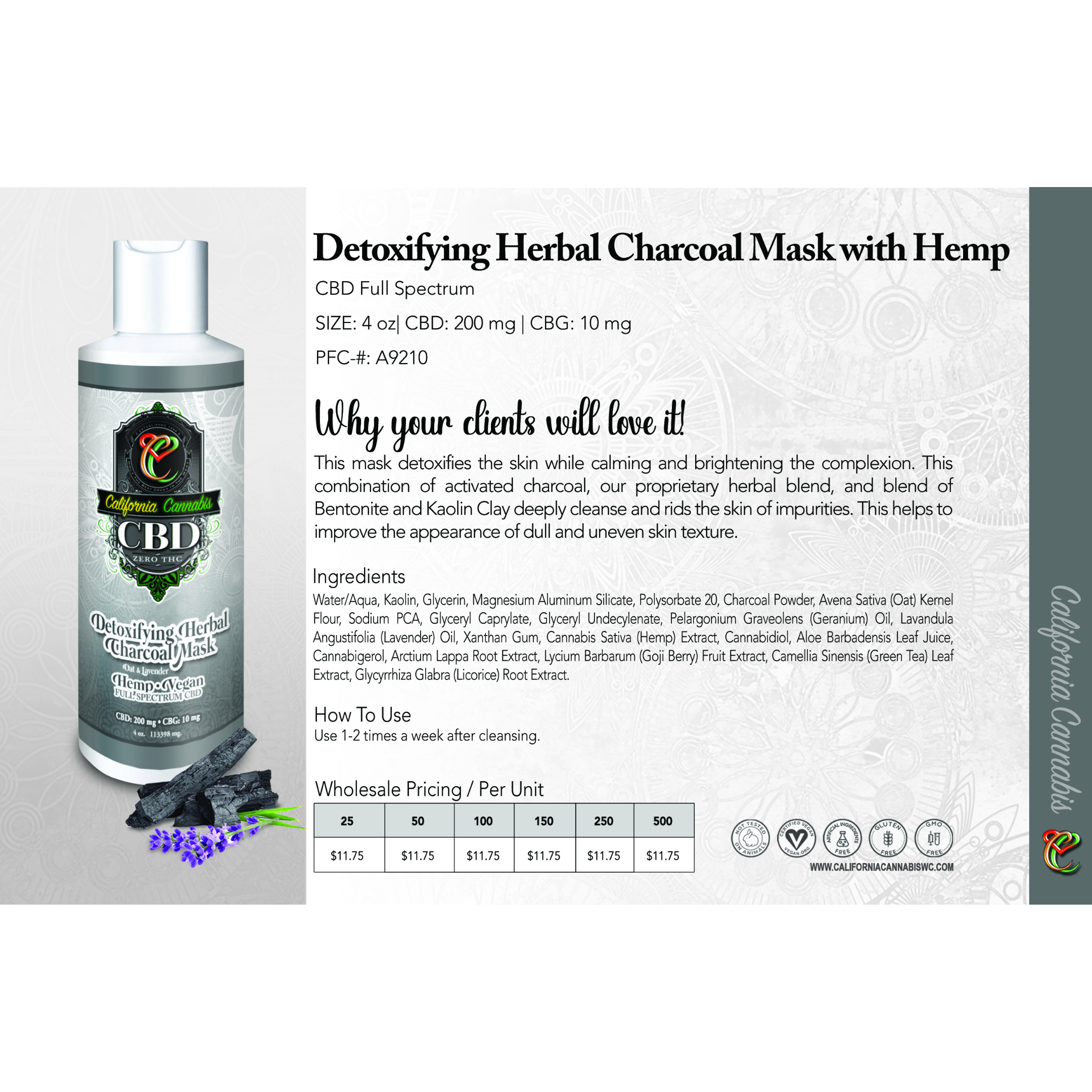 🌟 Reveal your skin’s natural radiance with our Detoxifying Herbal Charcoal Mask. Formulated with activated charcoal, full-spectrum CBD, and a blend of botanical extracts, this mask deeply cleanses, detoxifies, and soothes your skin. Ideal for targeting impurities and dullness, this powerful yet gentle formula leaves your skin refreshed, smooth, and glowing.